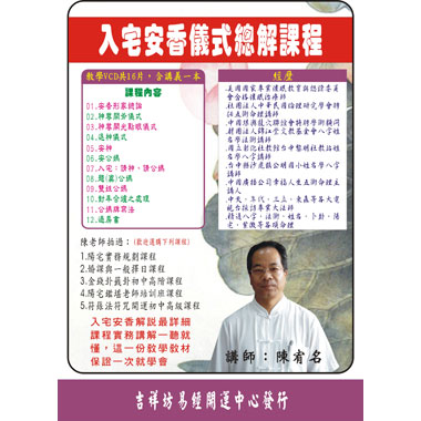 陳宥名老師 入宅安香儀式總解課程 (入宅安香解說最詳細 課程實務講解一聽就懂 這一份教學教材保證一次就學會) 繁體中文教學版 (DVD3片裝)