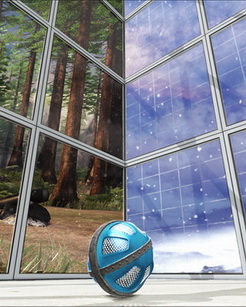 環境中。你是一隻從天而降的神秘的金屬球,穿越一座點綴著玻璃和鋼立方結構的